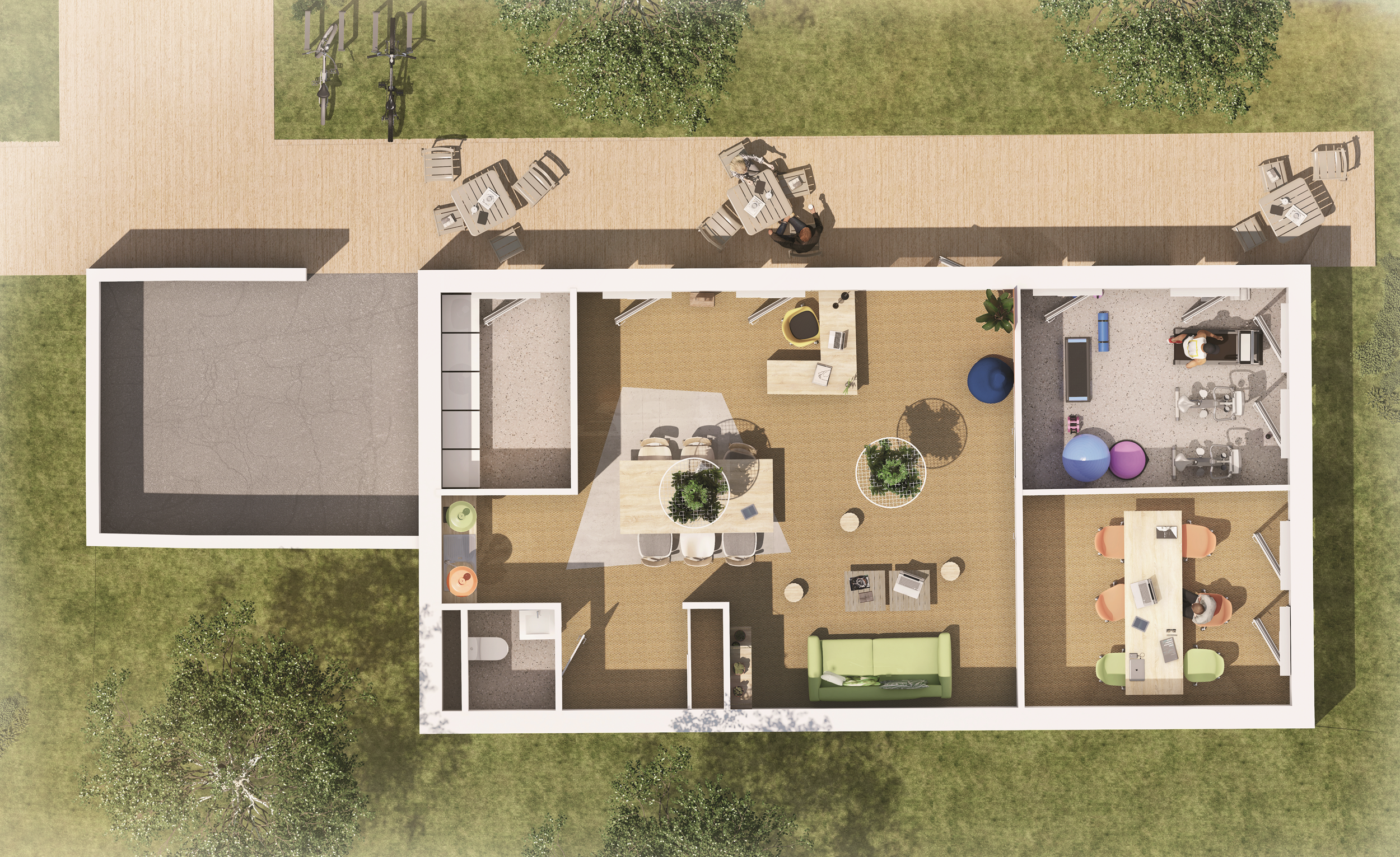 Un espace central modulable pour s’adapter à différentes activités : meetings spontanés, ateliers gastronomiques, après-midi jeux…