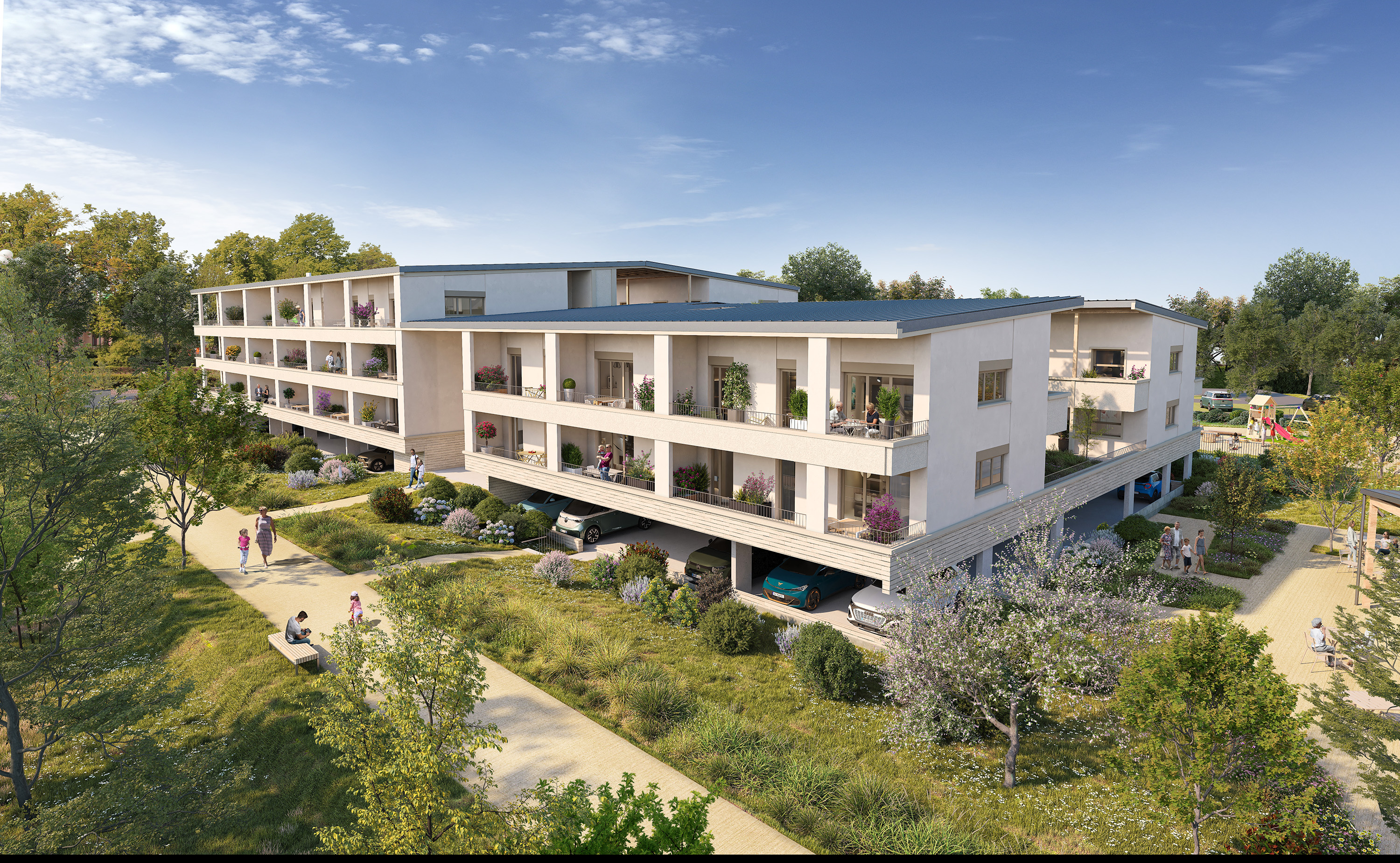Au cœur de la résidence, un pavillon intergénérationnel indépendant de 120 m² accueille un espace de rencontre et de partage pensé pour les seniors et les parents avec enfants. Ici, on ne se croise pas par hasard : on se rencontre, on échange, on partage des moments de vie dans un véritable espace commun ouvert à tous. Des temps de convivialité, des activités collectives et des moments d’entraide peuvent y prendre place, dans un esprit de solidarité et de bienveillance.